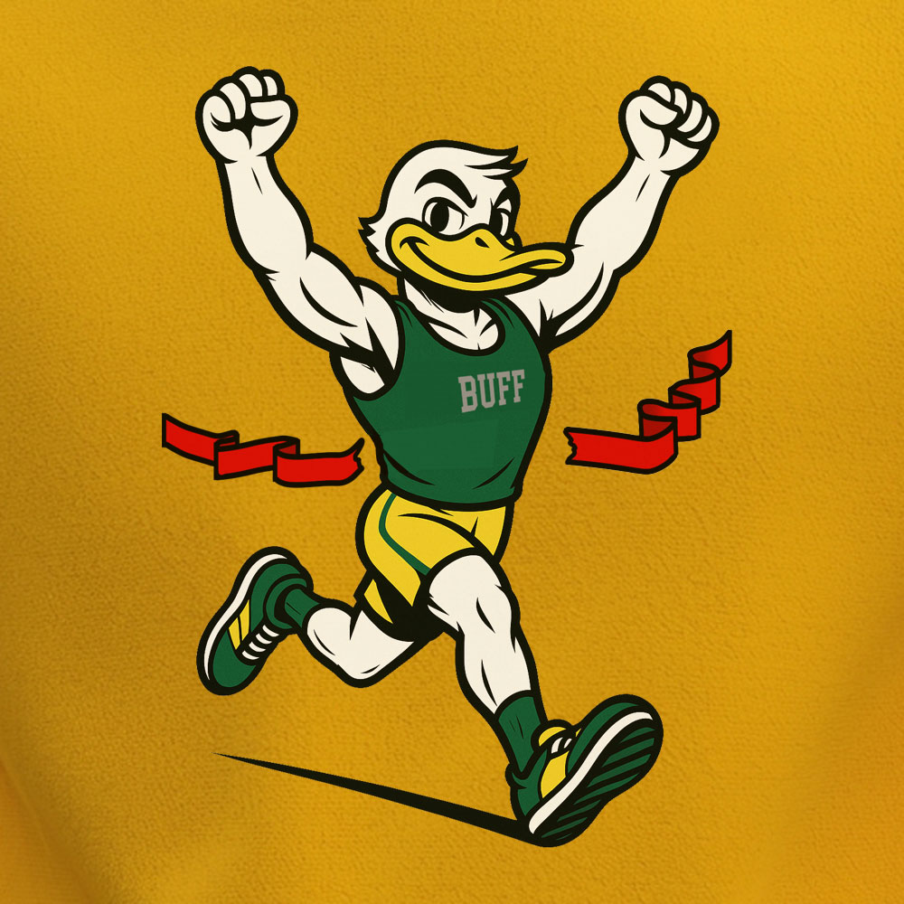 Buff Duck™ doesn’t wait for permission. He doesn’t run in sanctioned races. He tears through every finish line like it was put there just to slow him down. When the crowd cheers, it’s not for points on a scoreboard- it’s for the myth in motion. The tape breaks, the legend grows. Buff Duck stays Buff.