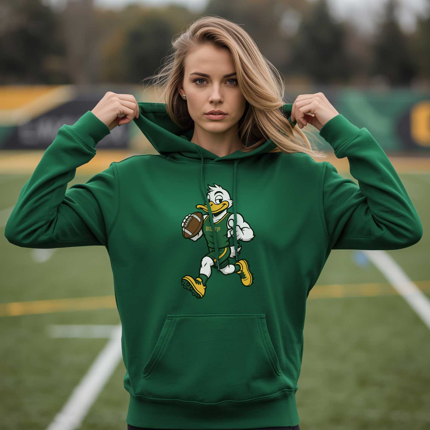Buff Duckā„¢ runs his own plays. Ball in hand, stride unstoppable, grin carved in confidence- he doesn’t need a huddle or a playbook.