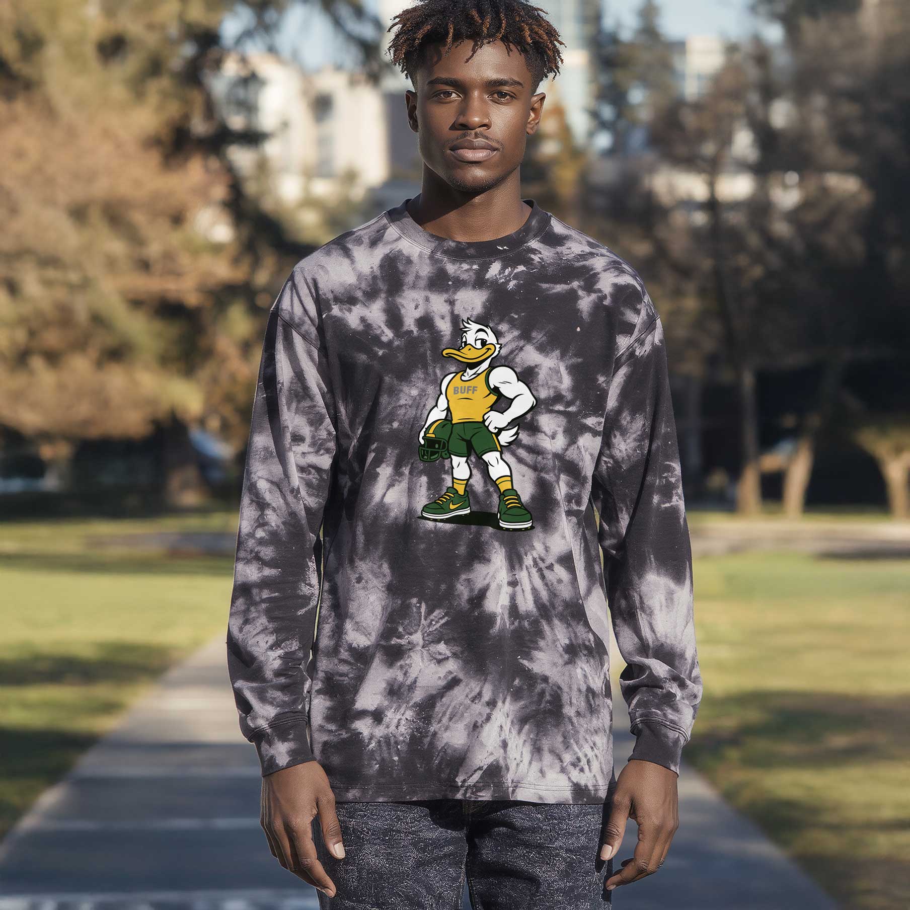 It’s an independent tribute to Oregon grit, created for fans of Buff Duck’s unstoppable spirit.